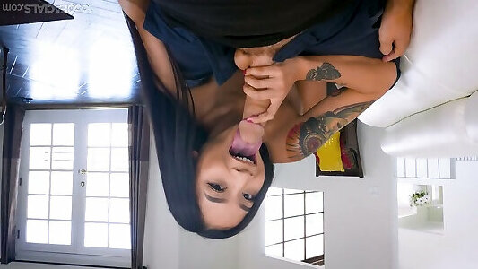 petite amie ayant de la joie de prendre ma grosse bite au fond de la bouche