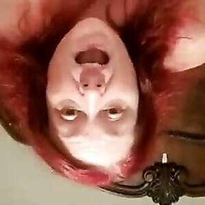 couguar aux cheveux bruns vigoureux chevauche une énorme sucette blanche puis avale