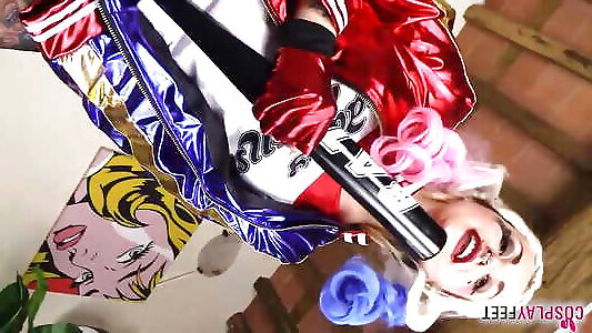 harley quinn chaude vous taquine avec ses pieds en bas nylons noirs