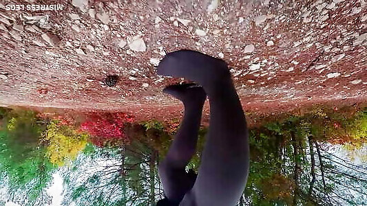 mes pieds en nylon anthracite se frottant les uns contre les autres près de ton visage
