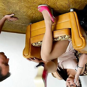 dominatrice dinky piétinant la victime en nylon tigths pt2