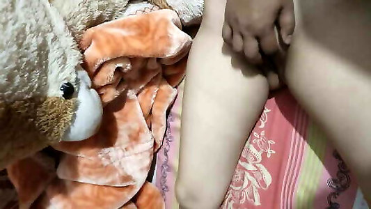 teenie towheaded princess est allongée dans son brother and sistersec pour doigter ses poils
