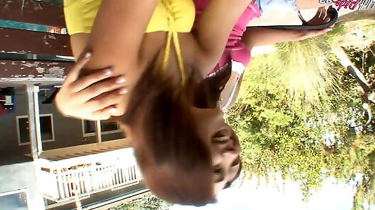 la brunette super sexy cyrus inhale se fait frapper à la caméra pour la toute première fois