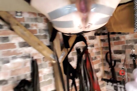 sous salope étalée sur une chaise gynécologique pour une utilisation avec des jouets, des plugs anaux, des orgasmes et des clips amusants de fisting profond