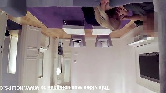 une pute blonde en forme avec des boules en d en robe noire sexy filmé secrètement avec le client