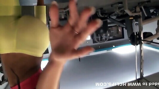 une fille en forme aime monter un sifflet de boeuf après la salle de gym, une cowgirl au gros cul