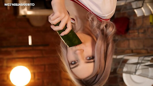 gros plaisir de chatte serrée huilée et plaisir avec du concombre