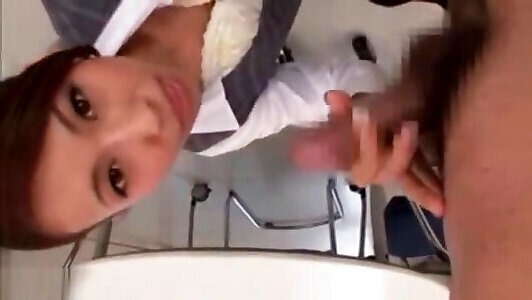 une fille asiatique avale jusquà la dernière goutte après une fellation fétichiste des pieds et une branlette espagnole - asianhappyending