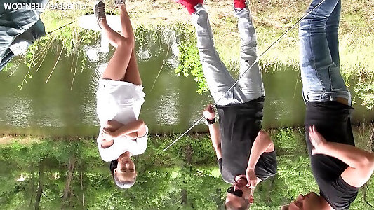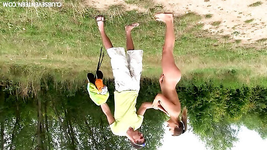 orgie décontractée avec un étranger sur un lac forestier avec du sperme dans la chatte
