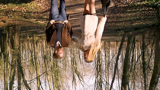 beauté avec une queue de cheval nikol chevauchant son amant dans une forêt