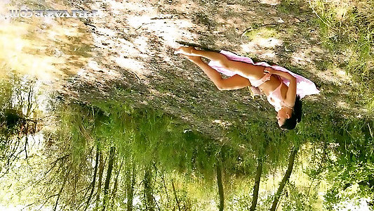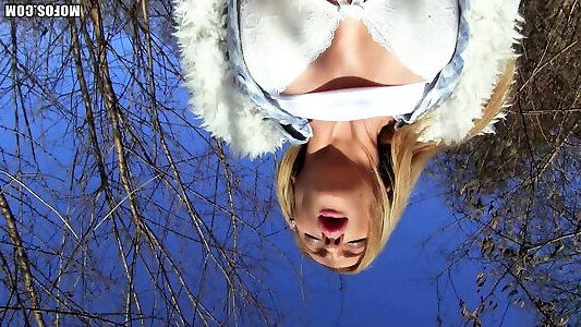 coquine en plein air martelant dans les bois avec la beauté vêtue angelica skies