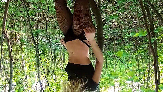 vidéo en plein air de la superbe leolulu en résille ayant des relations sexuelles en plein air