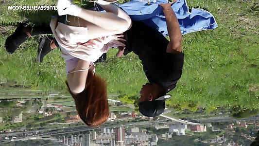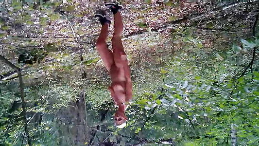 vidéo en extérieur de la rousse sexy kate gold chevauchant un arbre dur