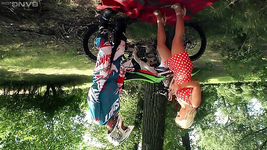 babe ouvre ses jambes pour une virilité de bonne taille sur une moto