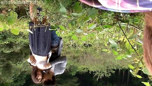 une milf flamboyante aux cheveux longs et au cul torride pisse dans les bois puis fait une somptueuse fellation
