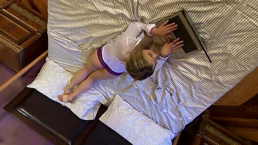 blondine donne une branlette avec les pieds et laisse tomber sa bite
