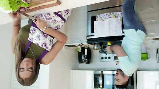kenzie taylor, mature aux gros seins, suinte du visage dans la cuisine