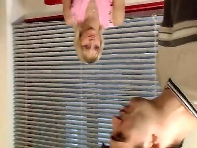 une ado blonde aux cheveux clairs se fait éjaculer dans la bouche