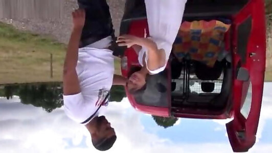 une mariée française blonde aux gros seins se prend une bite dans le cul dans la voiture