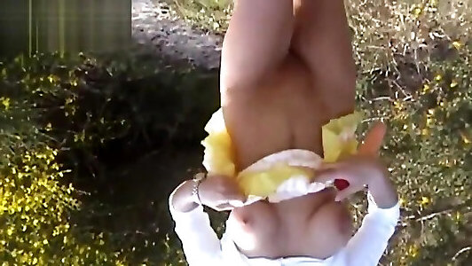 une blonde française sauvage, assommée sur un sol grincheux, en plein air