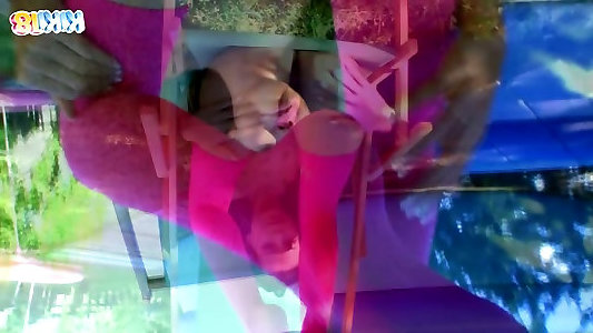 la adolescent dame kiki est en train de traire ses nouvelles lèvres au bord de la piscine