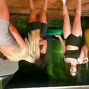 première fois girly-girl fuck-a-thon pour maman blonde chaude et connaissance aux cheveux noirs avec des bas et des talons hauts