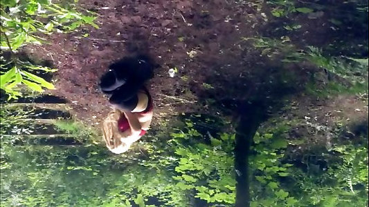 sissy crossdresser fricotant avec un faux pénis dans la forêt
