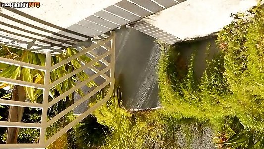 putain de super-garce dété longs jobs oraux son voisin à travers une balustrade