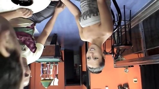 enf deux filles latines nues se disputent un étrange appareil