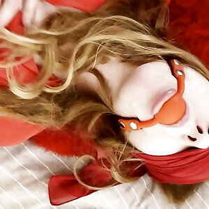 point de vue baise ferme avec les yeux bandés, ligoté, ballgagged salope aux cheveux roux