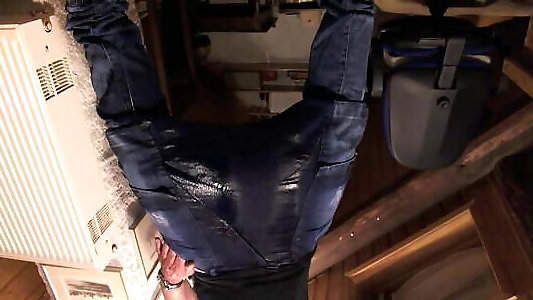 crossdresser éjacule derrière les jambes fermées. éjaculation démolie