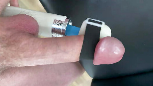 un énorme fusil à pompe qui se branle, pisse et éjacule dans un caoutchouc