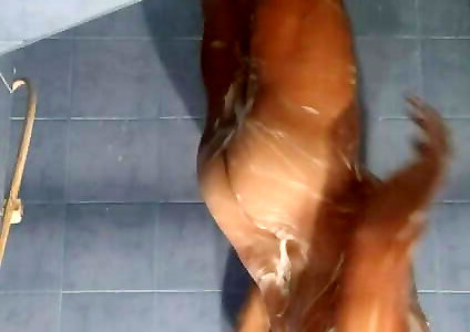 fille chinois lisse nettoyant son cul sous la douche