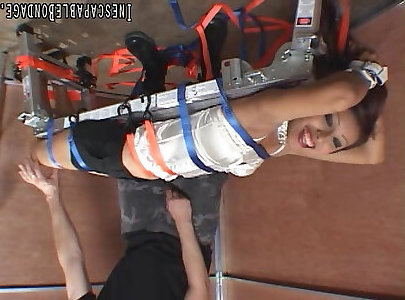 poupée fascinante alléchant énergiquement son fellah dans un accrochage bdsm