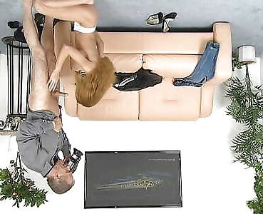 dame allemande aux seins ronds faisant plaisir à son homme sur le canapé du salon