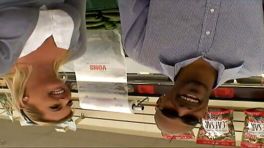 une milf blanche aux cheveux clairs et aux gros seins ramassée par une immense grosse bite noire à lépicerie