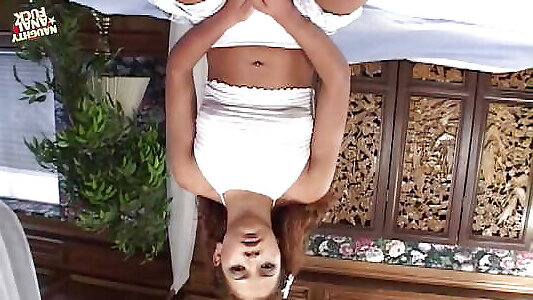 une femme mystérieuse aux gros seins donne un massage sensuel et des crèmes sur la bbc