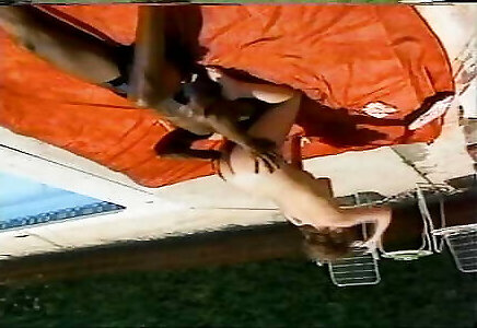 une fille avec un énorme knockers inné sentraîne près de la piscine