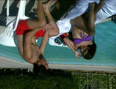 3 voies au bord de la piscine pour deux filles super mignonnes et un grand fille à succès