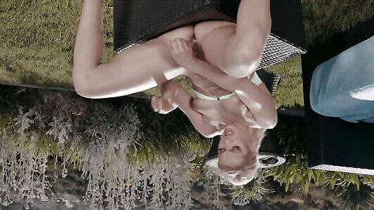 une demoiselle au corps brillant se penche et prend cette bite par derrière