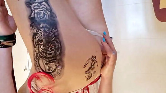 une latina amateur en forme revient de lentraînement et se fait baiser en string. éjaculation sur des seins parfaits