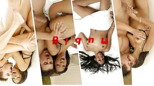 2 énormes goujons de bite baisent les trous de baise serrés sur 2 putes acdc aux cheveux noirs