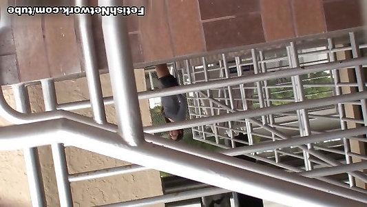 une demoiselle qui rit dans des nylons totalement façonnés aux teintes foncées se fait pilonner