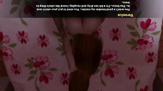 bombasse aux cheveux bouclés montre ses capacités de chevauchement de quéquette à un camarade