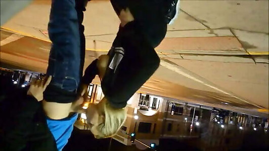gf soufflant sur la route son petit ami de bonne taille weenie