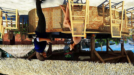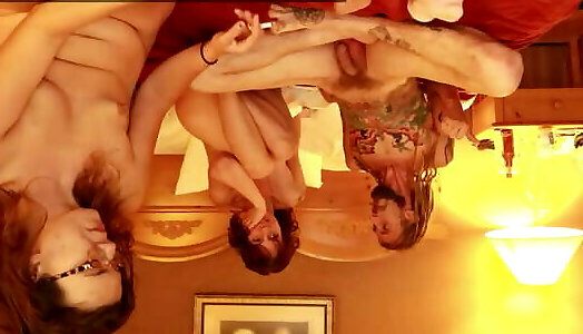 il se joint au plaisir alors que les deux filles terminent un jeu de strip-tease de terre et de feu