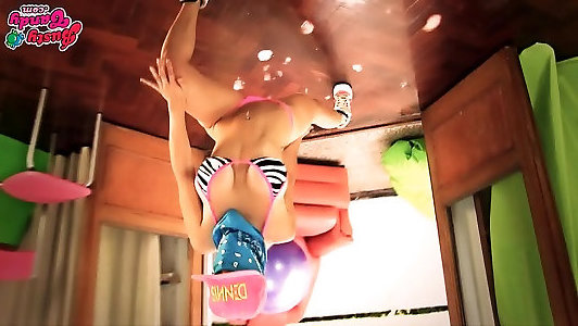 pulpeuse nubile poussin révèle ses beaux melons et gonflable butin