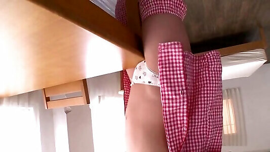 kinky frottant la table de chatte et secouant lorgasme tout seul à la maison