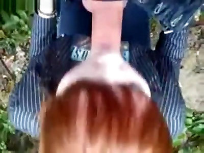 ponytail ginger-haired poupée six amateur à son petit ami un point de vue bj dans la nature