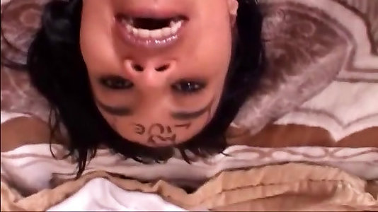 otaku cam demoiselle aux cheveux violets, plusieurs piercings et tatouages vous montre à quel point elle aime sétouffer avec un gros fusil à pompe